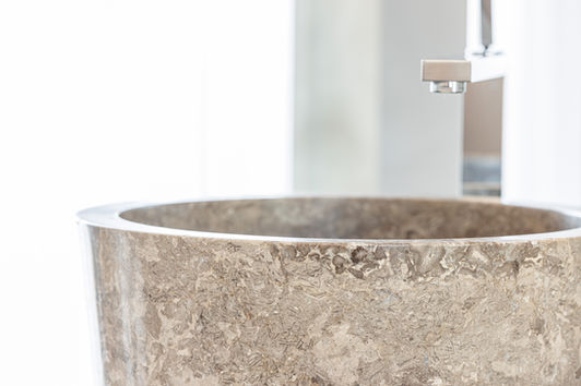 Un concept open space qui allie marbre et bois pour une ambiance à la fois chaleureuse et raffinée.